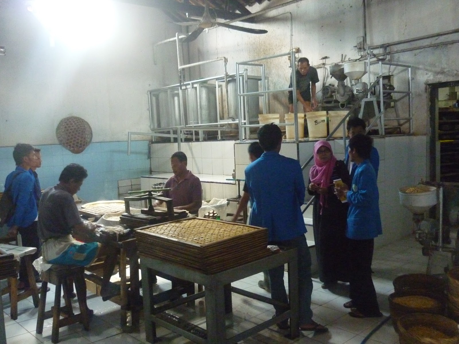 Hari ini para mahasiswa memulai aktifitas dengan berkunjung ke rumah H. Mugheni, salah satu pengarajin tahu di Tegal yang sudah menggunakan konsep semi modern dan melanjutkan pendampingan pemanfaatan ampas tahu di kelompok Pesalakan untuk kedua kalinya. Atau bisa dibilang hari ini hari terakhir pendampingan pemanfaatan ampas tahu menjadi berbagai macam makanan alternative. Dan selanjutnya hari kamis besokakan dilanjutkan pembekalan bagaimana cara pengemasan dan pemasaran oleh dosen UNIMUS.