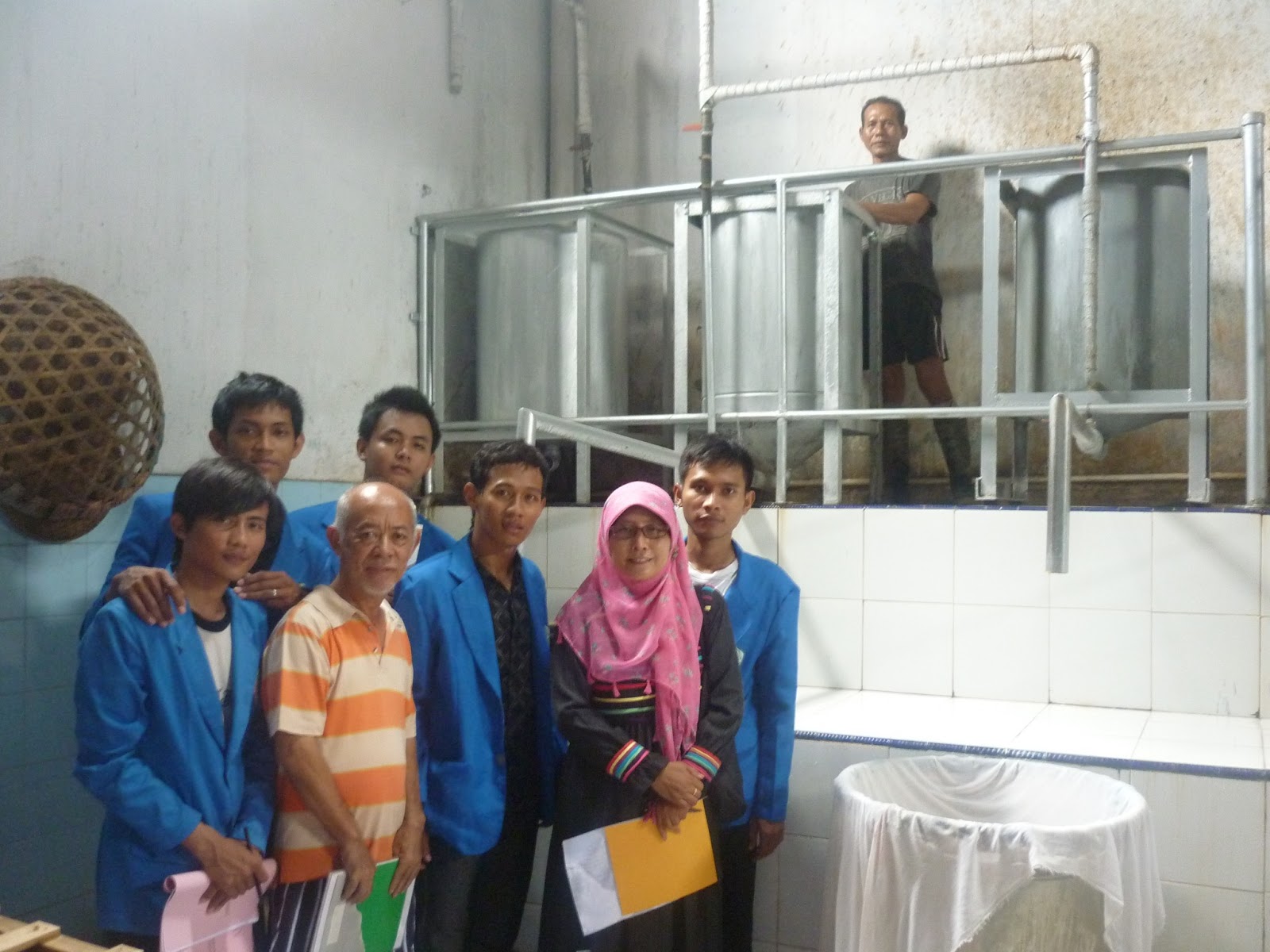 Sesampainya di rumah produksi ‘Nata Jaya’, mereka langsung di sambut oleh beberapa karyawan kios sembago. Iya, pemilik ‘Nata Jaya’, yaitu bapak Andi …. Selain mempunyai pabrik tahu, juga memiliki kios sembago. Ketika bertemu dengan beliau, mereka sedikit canggung dan kurang dekat dalam penyampaian maksud mereka. Terkesan bahasa yang baku dan kurang akrab. Namun, setelah berbincang-bincang sedikit dengan beliau, tiba-tiba suasana berubah menjadi akrab dan santai obrolan mereka, itu gara-gara beliau melihat logo almamater mereka ada tulisan Muhammadiyah dan ternyata beliau dulu pernah aktif di Muhammadiyah saat di Jakarta. Mulai lah mereka melanjutkan diperlihatkan oleh beliau segala prestasi yang pernah diraih seperti pernah mendapat penghargaan UPAKARTI dari presiden Soeharto pada tahun 1995, UPAPRADANA dari Gubernur Jateng tahun 1994, dari Bupati Tegal tahun 1993 dll. Melihat begitu banyak presatasi yang telah beliau raih, mereka sangat antusias dalam mendengarkan setiap kata yang keluar dari pembicaraan beliau sampai akhirnya mereka diberi kesempatan untuk melihat proses pembuatan tahu di pabriknya yang terletak tepat di belakang rumahnya.