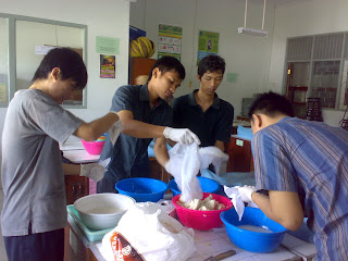 Pembekalan dilanjutkan di laboratorium teknologi pangan sebanyak 3 kali, mulai dari pukul 08.30-15.00 WIB. Hal ini dilakukan mengingat jumlah keterampilan yang harus diberikan kepada masyarakat sangat beragam.